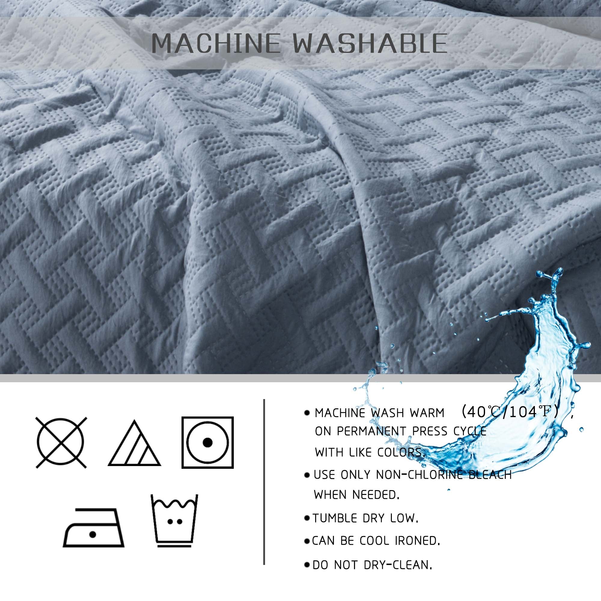 - This luxury soft reversible quilt set is machine washable, and you can also tumble dry on low heat cycle.